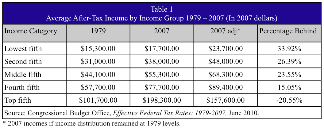 Between 1979 and 2007, inflation adjusted after-tax incomes for the bottom fifth of Americans have increased 16%. For the middle fifth, income gains have been slightly higher at 25%. But for the top fifth (and especially the top 1%) the gains have been dramatically higher. How did this happen?